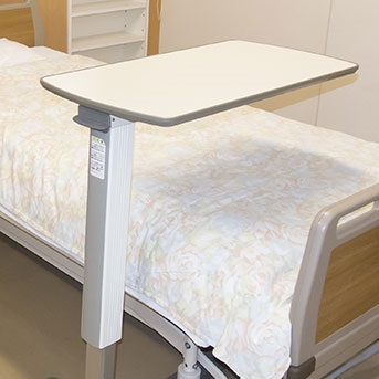 - Ein Betttisch, weil dadurch die Selbständigkeit des Kranken in vielerlei Hinsicht unterstützt wird, so z.B. beim Essen, Lesen, Schreiben usw. Bei handelsüblichen Betttischen können Tischhöhe und Schrägneigung der Tischplatte entsprechend der Tätigkeit verstellt werden. Auch sie können in Sanitätshäusern ausgeliehen werden. Ihren Zweck erfüllen aber auch Tabletts mit Beinen, die in das Bett gestellt werden und, mit etwas handwerklichem Geschick, auch selbst gebastelt werden können.